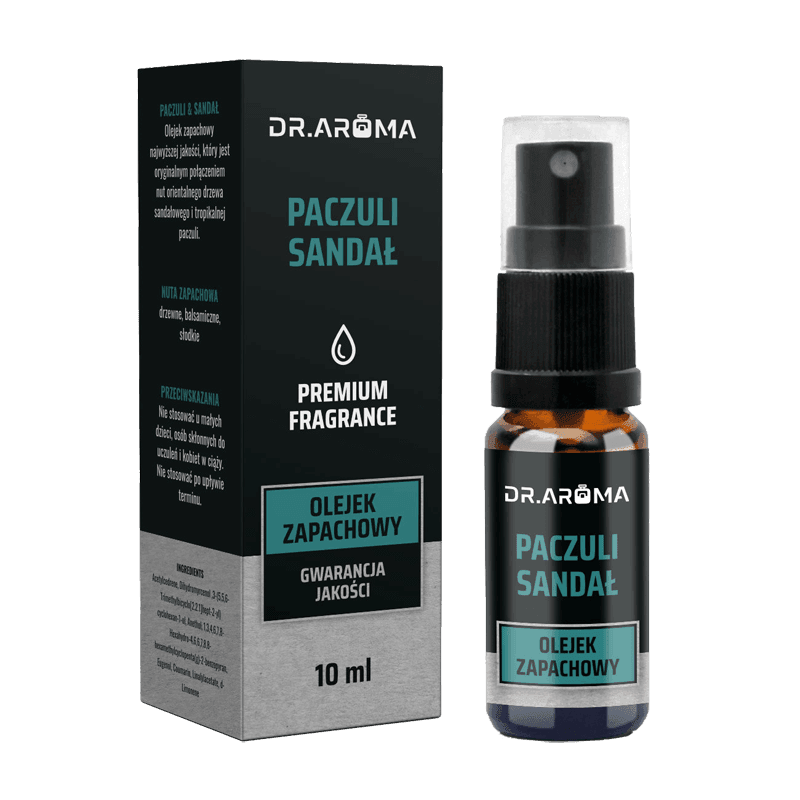 Olejek zapachowy premium Paczuli & Sandał to wyjątkowe połączenie orientalnego drzewa sandałowego i tropikalnej paczuli. Oferuje drzewny, balsamiczny aromat o delikatnych piżmowych nutach, idealny dla osób ceniących zmysłowe i wyrafinowane zapachy.