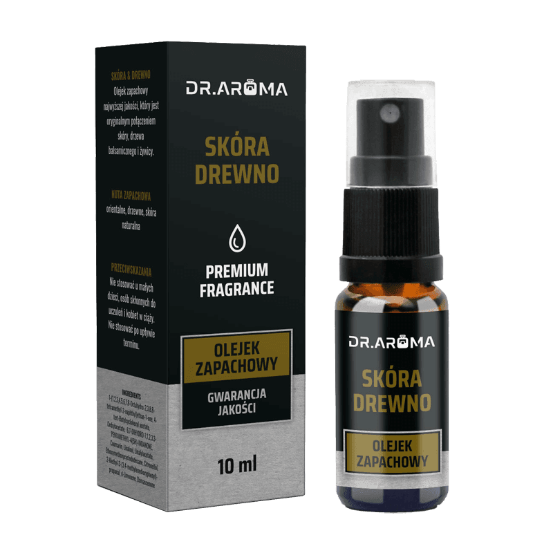 Olejek zapachowy premium Skóra & Drewno to ekskluzywna mieszanka nut naturalnej skóry, drzewa balsamicznego i żywicy. Zapewnia orientalny, drzewny aromat o trwałym i eleganckim charakterze.